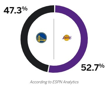 ESPN dự đoán tỷ lệ thắng trận này: Lakers 52,7%, Warriors 47,3%.