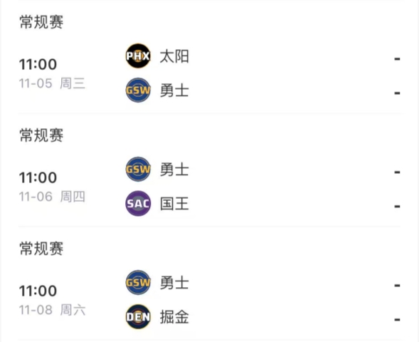 Sau đó, Warriors trở về sau một trận đấu trên sân khách (VS Pacers) vào ngày 2 tháng 11 và nghỉ ngơi trong 2 ngày, sau đó bắt đầu lịch thi đấu 4 ngày, 3 trận (thi đấu với Suns trên sân nhà, thi đấu với Kings trên sân khách và thi đấu với Nuggets trên sân khách sau một ngày nghỉ ngơi).