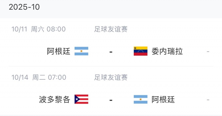Argentina sẽ chơi hai trận giao hữu vào tháng 10, với Venezuela vào ngày 11 và Puerto Rico vào ngày 14.