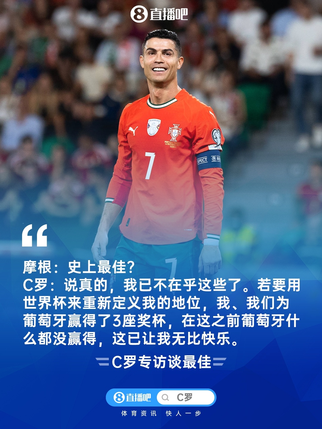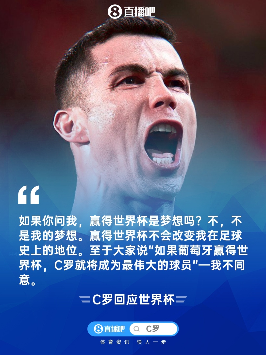 C Ronaldo: Đúng vậy, nhưng đây không phải là nỗi ám ảnh. Tôi không đồng ý với (các cầu thủ xác định World Cup) bởi vì Bồ Đào Nha chưa bao giờ vô địch World Cup và chúng tôi sẽ chiến đấu vì điều đó. Dùng cái này để đánh giá toàn bộ sự nghiệp của tôi từ 14 đến 41 tuổi? Để phán xét cái gì? Đánh giá qua một cuộc thi, tôi có phải là một trong những người giỏi nhất từ trước đến nay không? Với sáu hoặc bảy trò chơi? Bạn có nghĩ điều này là công bằng? Điều này không công bằng.